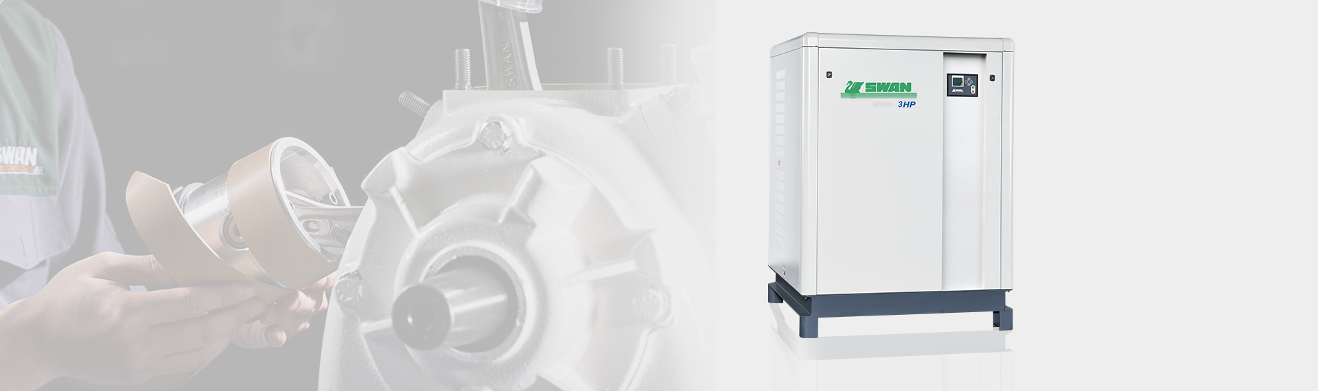 SWAN無油空壓機體,oil-less結構設計,大幅的降低空氣清淨化系統的成本,提供更優質的空氣品質。