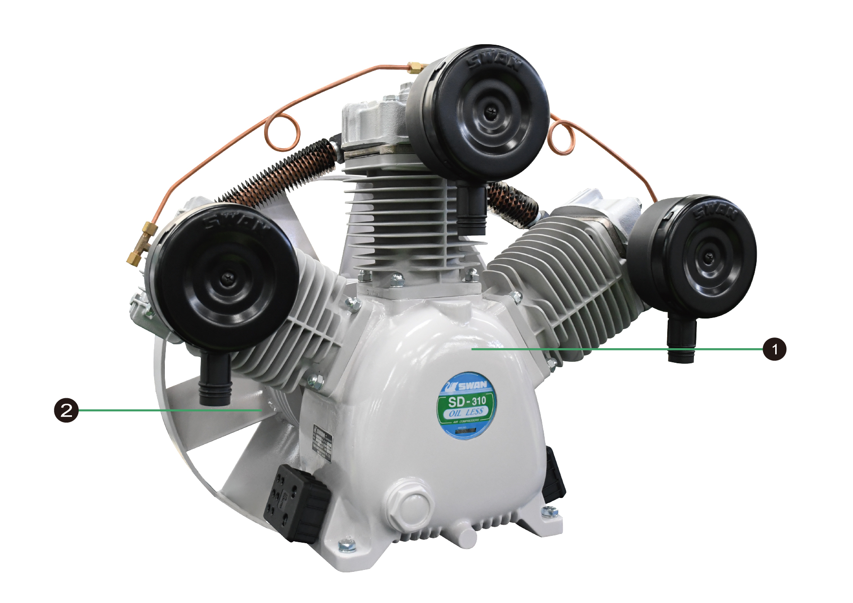 SWAN exclusive patented bare pump, using a variety of high-reliability precision components, completely oil-free structure design and simple belt adjustment mechanism, effectively increase the life of the air compressor, greatly reduce the cost of the air purification system, and provide you with better air quality.