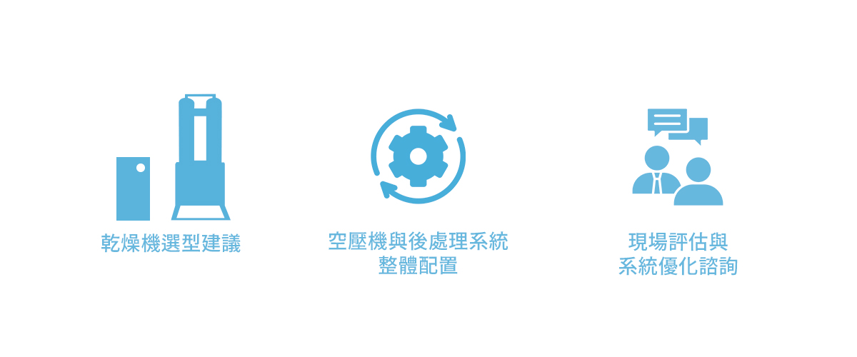 若無明確使用要求,一般工廠可先從冷凍式乾燥機著手,若後續擴展需求再諮詢評估升級吸附式系統。適當的乾燥機配置,能夠顯著延長空壓系統壽命、降低維修頻率,提升整體用氣品質與生產穩定性。
